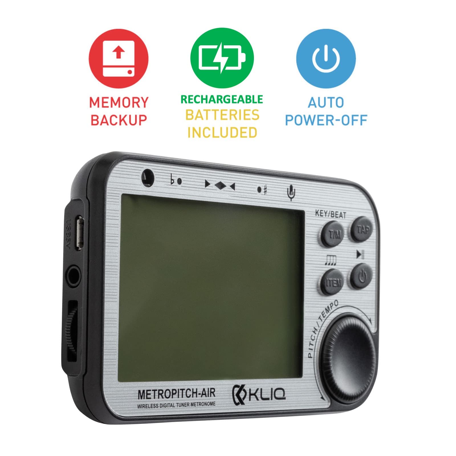 Amazon Com Kliq Metropitch Air Rechargeable Metronome Tuner For All Instruments With Guitar Bass Violin Ukulele And Chromatic Tuning Modes Wireless Clip And Sensor Included Pewter Gray Musical Instruments